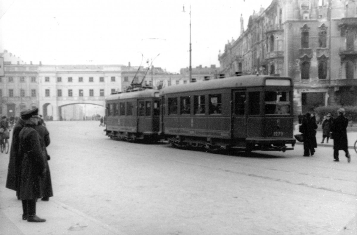 1 września - 28 października 1939. Fotografia z okresu okupacji niemieckiej w Warszawie. Tramwaj na placu Krasińskich.